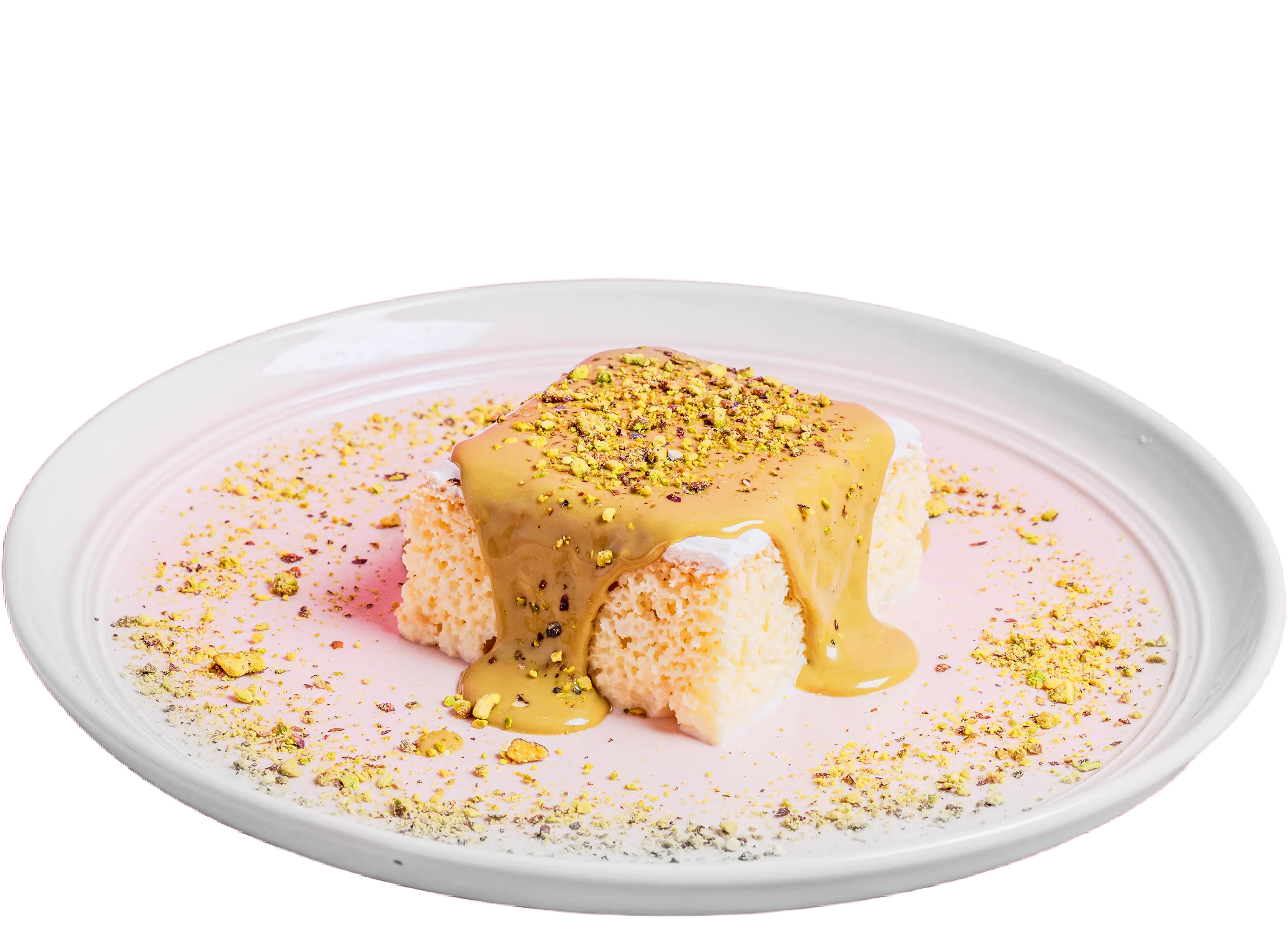 Soft sponge cake soaked in creamy milk, served with your choice of sauce topping for a rich and indulgent treat.